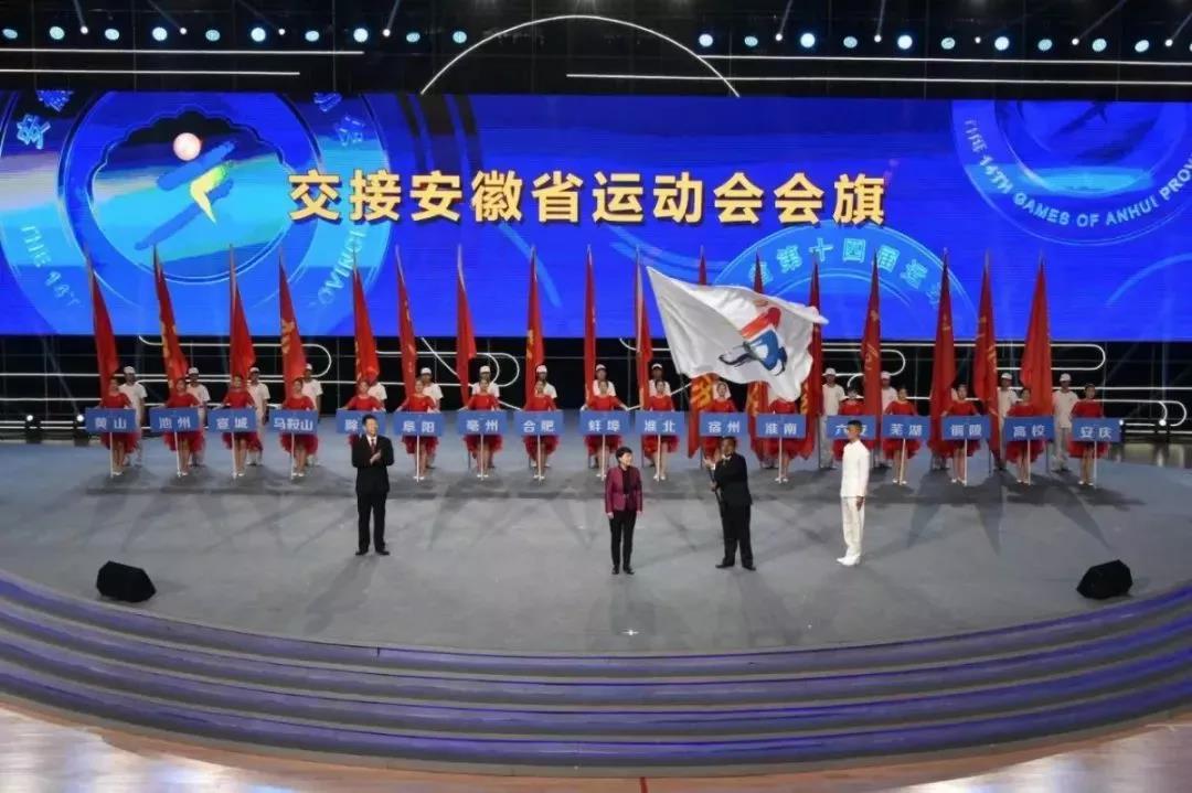 经省政府批准,省十五运会将于2022年在滁州市举办。闭幕式上,举行了会旗交接仪式。
