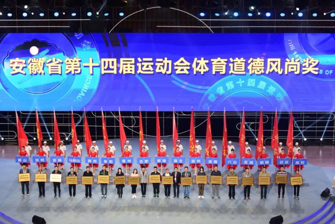 闭幕式上宣读了安徽省第十四届运动会比赛成绩和获得“体育道德风尚奖”代表团名单,并为获奖代表团颁奖。仪式上还进行了精彩的文体展演。