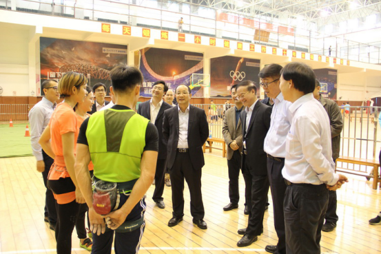 随后,李泽局长和李思敏校长共同为广西攀岩队揭牌,并来到训练场观摩运动员训练,鼓励他们刻苦训练,勇攀高峰,为国争光,为壮乡添彩!