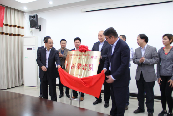李泽局长、李思敏校长共同为广西攀岩队揭牌