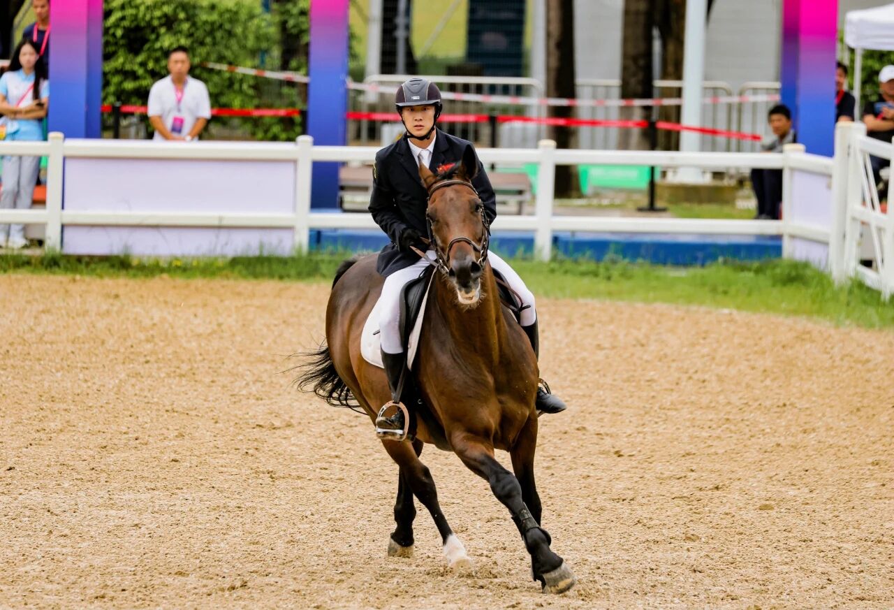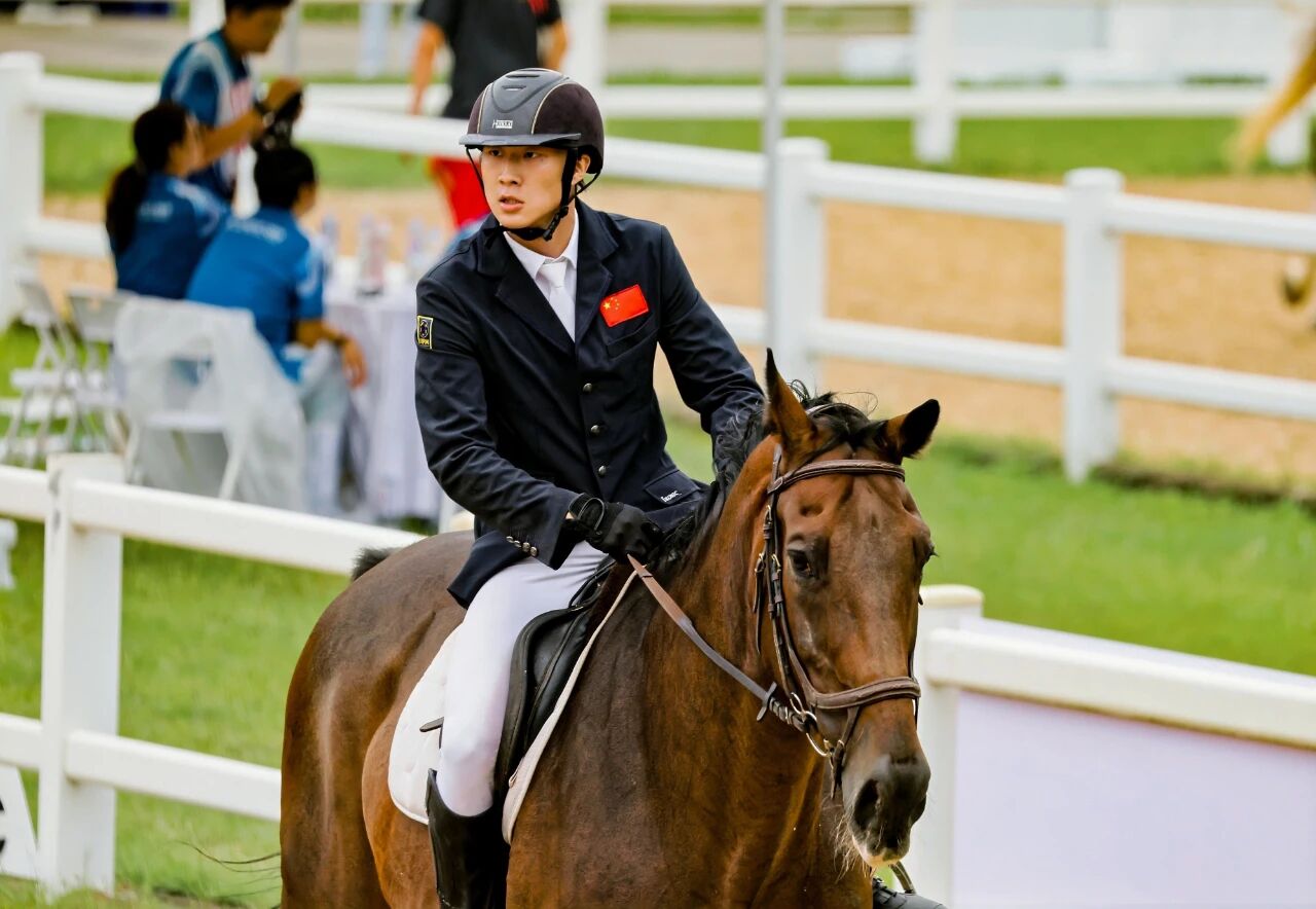 10个障碍12次起跳,线路、助跑、节奏、距离、起跳、连续起跳、回转,一切皆在陈柏良与大胖的人马合一、马随人意之中。零失误,295分。首项结束后,陈柏良排名第一!