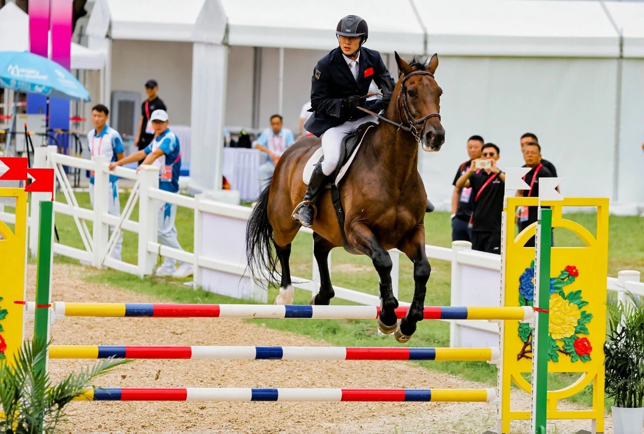 陈柏良深呼吸甩开杂念,抚摸大胖,果断翻身上马。陈柏良全神贯注于用腿、臀和缰绳指挥大胖,轻松越过第一障碍,第二障碍难度最大,陈柏良纵马助跑,心中倒计步数:三、二、一、起!大胖踩着节奏一跃而起、飞身越过!好样的大胖,继续!