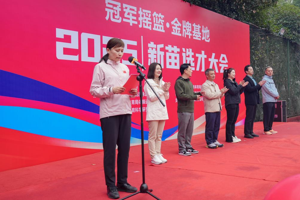 为深入贯彻落实《省体育局2025年“青少年体育育苗强基提能工程”建设“61530X行动”实施方案》,11月8日,“冠军摇篮 金牌基地”2025年新苗选才大会在省体育局崇仁中心举行。崇仁中心主任樊光正宣布开幕。省体育局群众体育处二级调研员雷青松,奥运冠军李小双、肖海亮,世界冠军何丽娜,体育馆小学校长鄢明丹共同启动开幕式。