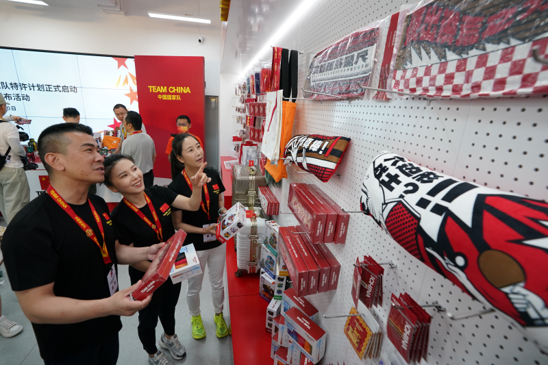 发布会现场,还举办了抖音、天猫、快手平台中国国家队官方特许产品旗舰店上线仪式。另外,中国国家队官方特许零售店国家体育场店、王府井工美大厦店、体育馆路店、南京夫子庙店等实体零售店也在当日正式营业,此后还将在得物、小红书等互联网平台开设旗舰店,在全国各大城市开设线下零售店,在高铁列车上开设销售点,为广大消费者、体育迷提供更便捷的购买渠道。