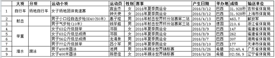 2016年我国运动员创世界纪录统计