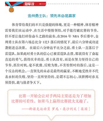 运动员赢得比赛的过程其实也是不断应对逆境的过程。