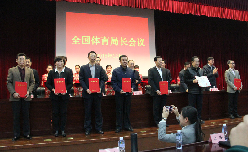 29日下午还召开了中华全国体育总会九届三次常委会。体育局长会议期间还进行了表彰,授予邱钰涵等217名运动员、贺东辉等132名教练员2015年度体育运动荣誉奖章;授予北京市体育局法规宣传处等70个集体、孟维明等178位个人“全国体育事业突出贡献奖”,以表彰这些集体和个人在体育文化和体育宣传工作中做出的突出贡献。