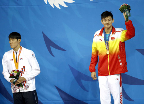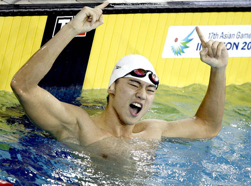 2014年9月25日晚,仁川亚运会游泳比赛继续在文鹤游泳馆进行。在男子100米自由泳决赛中,中国选手宁泽涛力压韩国名将朴泰桓夺冠。