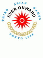 1958年东京亚运会 时间:1958年5月24日-6月1日 地点:日本-东京 会徽:第3届亚运会会徽除亚奥理事会会徽图案中的太阳光芒外,上方是亚奥理事会“EVERONWARD(永远向前)”的口号,下方有代表20个参赛国的20个圆环,圆环下方写明了举办地。 奖牌榜: