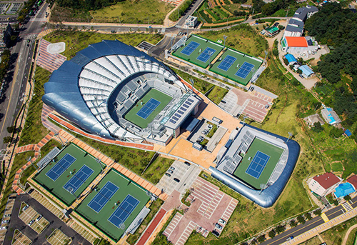 2014年仁川亚运会即将于9月19日开幕,届时36个大项的比赛将在仁川的49个场馆里全面展开,图为十井网球竞技场。