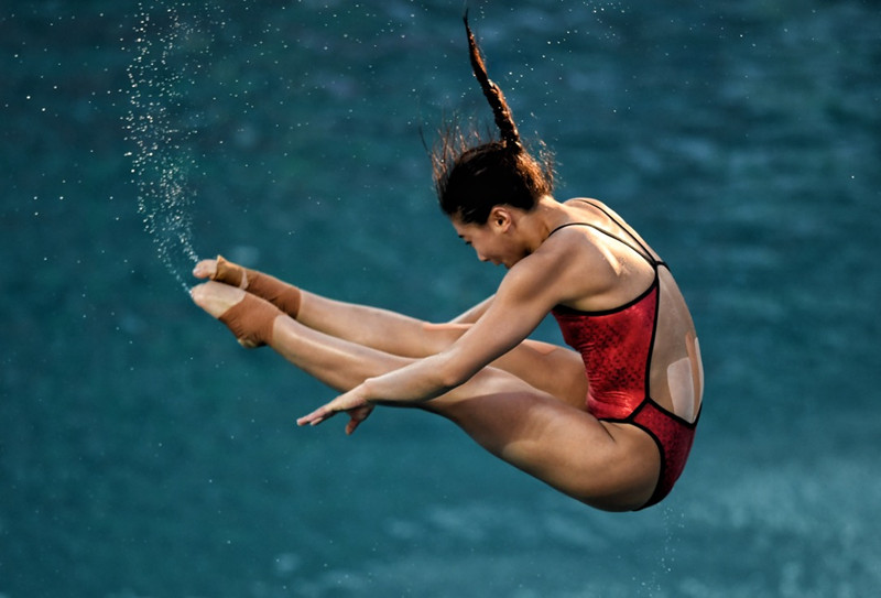 当地时间2016年8月14日,第31届夏季奥运会跳水比赛在巴西里约玛利亚-伦克水上运动中心进入第八个比赛日。在女子单人3米跳板跳水决赛中,中国选手施廷懋以406.05分夺得金牌,何姿以387.9分收获银牌。