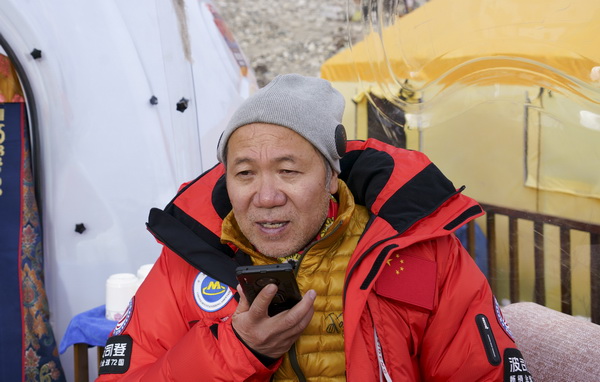 19时40分,2020珠峰测量登山活动前线总指挥王勇峰与登山队队长次落通话,了解队员身体状态、海拔5800米过渡营地的天气状况以及是否开展测量工作等相关情况。