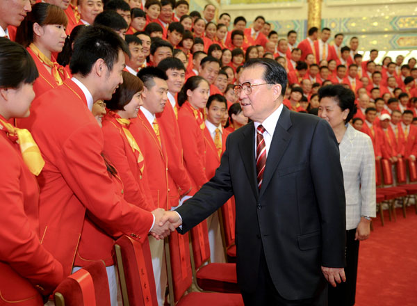 中共中央政治局常委李长春在北京人民大会堂会见参加第三十届奥运会的中国体育代表团