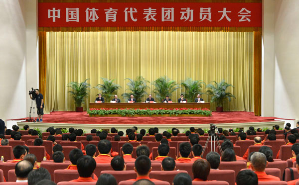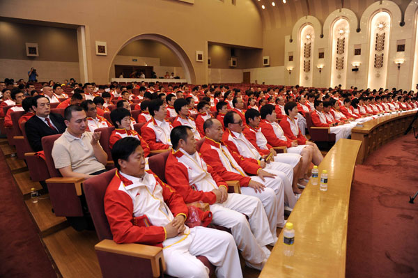 图为部分代表团成员 在7月10日召开的中国体育代表团动员大会上,中国体育代表团团长、中国奥委会主席刘鹏宣布中国体育代表团正式成立,并强调,要以夺取运动成绩和精神文明双丰收的优异成绩,回报党中央国务院的关心与重视,回报全国人民的支持与厚爱! 中国体育代表团将尽最大努力,实现全面的参赛目标:第一,向各国、各地区代表团学习,加强友好交流,增进相互间的友谊,促进奥林匹克运动的不断发展;第二,充分发挥竞技水平,以优良的运动成绩鼓舞和激励全国人民的爱国热情,迎接党的十八大胜利召开;第三,发扬奥林匹克精神,弘扬中华体育精神,顽强拼搏,胜不骄,败不馁,以中国运动员良好的精神风貌和体育道德风尚展示国家形象;第四,以奥运会上体现综合实力和影响力激发和引导人民群众的健身热情,带动群众体育、体育产业和各项体育事业的进一步发展,为促进社会主义文化大发展大繁荣,构建社会主义和谐社会,向体育强国建设不断迈进作出贡献。 刘鹏要求代表团把党中央、国务院和全国人民的亲切关怀化作最坚定的信心、最昂扬的斗志、最振奋的精神。他说,伦敦奥运会是我们取得北京奥运会辉煌成就后首次境外参加夏季奥运会,是我们向体育强国迈进中的一次极其重要的实践和展示。我们能否取得优异的成绩,展现良好的精神风貌,全世界将瞩目,全国人民将给予高度关心和热切期待。中国体育健儿在奥运赛场展现精彩的表现,为国争光,将进一步凝聚人心,激发全国人民的爱国热情,是为迎接党的十八大胜利召开作出的积极贡献,是代表团每位成员肩负的历史责任。 从本周期世界体坛格局变化看,各国各地区对伦敦奥运会高度重视,措施周密,力度空前。对此,刘鹏要求代表团冷静清醒地充分认识参赛的严峻形势,做好迎接一切困难和挑战的最充分准备。他说,随着奥运日益临近,各国运动员状态渐入佳境,水平有所提升。全世界的运动员和我们一样,长期刻苦训练,也将会在奥运会上奋力进取,期待突破。可以预见,伦敦奥运会的比赛竞争将空前激烈,每一场都需全力拼搏,每一块金牌、每一场胜利都会来之不易。 “代表团既要做钢铁之师、威武之师,更要做文明之师、礼仪之师,以良好的体育道德和文明素养,展现中国青年的风采,展现国家形象。”刘鹏说,中国运动员不仅仅是参赛选手,也是中国青年、中华民族的形象大使和友好使者。为国争光,不仅仅意味着在赛场上拼搏奋斗,夺取胜利,良好的思想作风、道德修养、精神面貌、文明礼仪、赛风赛纪,同样都是为国争光。中国体育代表团要以最大热情,尽最大努力,在奥运会上全面展示中国体育健儿不畏挑战,敢于胜利的坚强决心;奋勇拼搏,永不放弃的昂扬斗志;团结协作,顾全大局的团队精神;从容镇定,不骄不躁的良好心态;遵守规则,公平竞争的体育道德;热情友好,礼貌大方的文明素养;胜不骄、败不馁,尊重对手、尊重裁判、尊重观众的高尚境界。以良好的赛风赛纪和文明道德修养展现于世人面前,为祖国争得荣誉。 刘鹏特别强调,要切实加强和落实反兴奋剂工作,确保中国体育代表团干干净净参加奥运会。他要求,代表团每位成员必须在为国争光的历史高度和政治高度上认识反兴奋剂工作的极端重要性;为捍卫国家荣誉,维护中国改革开放的巨大成就,维护中国体育形象,维护运动员身心健康,对反兴奋剂工作一定要落实落实再落实、保险保险再保险。 会议由中国体育代表团副团长、中国奥委会副主席段世杰主持,中国奥委会副主席杨树安、冯建中、蔡振华、吴齐,代表团成员约400人出席大会。