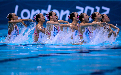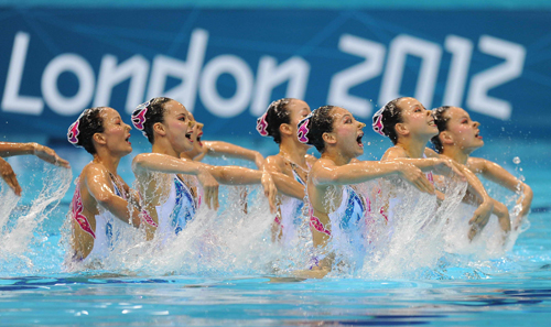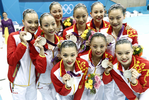 8月10日,伦敦奥运花样游泳集体项目决赛结束,中国队获得银牌,创造了历史最好成绩。