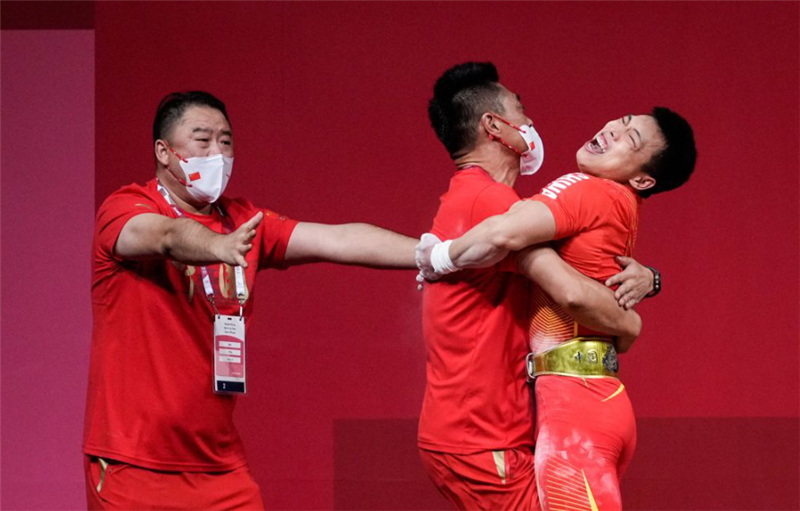现场所有人都屏住了呼吸,只见谌利军翻站非常轻松,杠铃都没有调整直接完成试举。现场燃起来了!中国队的欢呼声响彻场馆,教练于杰和张量冲上台拥抱谌利军。又一个中国举重和奥运史上的经典瞬间,就此定格。 (转自7月26日《中国体育报》01版)