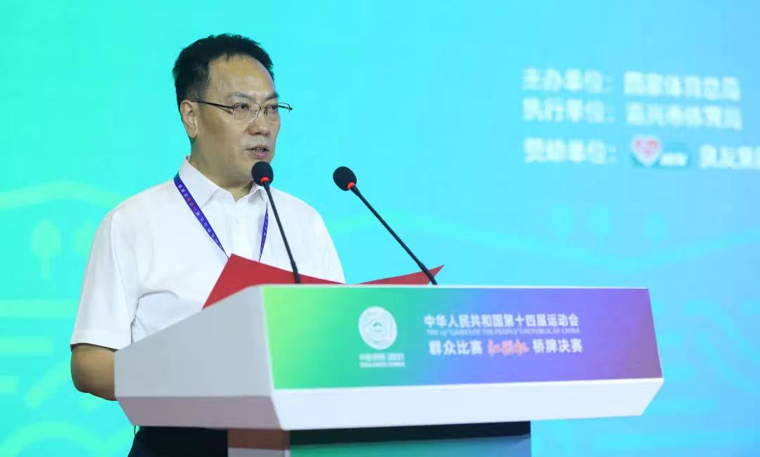 嘉兴市人民政府副市长邢海华致欢迎词时说,9月15日晚,全运会在陕西西安隆重开幕,习近平总书记出席开幕式并宣布运动会开幕,全运会圣火熊熊燃起。今天,我们又迎来了十四运会群众比赛桥牌决赛。一直以来,嘉兴市委、市政府高度重视体育事业,全面推进群众体育、竞技体育和体育产业健康协同发展。桥牌作为智力运动在嘉兴获得了广泛推广,自2013年以来嘉兴市在“七一”之际每年都举办“红船杯”桥牌公开赛,如今已经成为国内水平较高、影响力较强的全国桥牌赛事之一,得到了广大桥牌爱好者的赞誉。