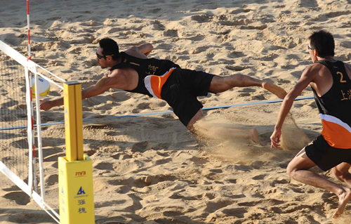 2013年9月11日下午,第十二届全运会沙滩排球赛决赛在辽宁营口鲅鱼圈举行。辽宁选手李焯新/张立增2比0战胜上海高鹏/徐林胤,获得冠军。