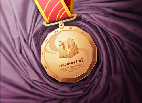 第十二届全运会奖牌取名为“新曙光”,代表着第十二届全运会的召开为辽宁经济腾飞推力,在中国大地上出现新的曙光。奖牌正、反面分别标注着历届全运会的举办时间和举办地,预示着全运精神将在本次盛会上薪火相传。奖牌外形似转动的历史车轮,寓意国人锐意进取、与时俱进、顽强拼搏;奖牌形状又似日晷,寓意祖国神州大地正发生着日新月异的巨变,传达了浓厚的时代气息和创新精神。 值得一提的是,此次奖牌设计打破常规,其形状设计成了12边形。据奖牌设计团队主创人员王志勇介绍:“本届全运会是我国举办第十二届全运会。数字12不仅代表着历届全运会举办地,同时也含有圆满、完整之意,所以我们想到了将奖牌做成12边形,表达了人们对本届全运会的热切期盼和美好祝愿。”
