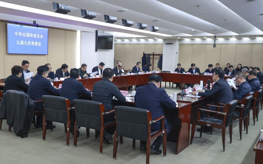 12月29日,中华全国体育总会九届九次常委会在京召开。总会主席高志丹、名誉主席刘鹏,副主席郑维、王瑞连、李颖川、杨树安,顾问崔大林和常委等有关人员出席会议。会议审议通过了关于召开中华全国体育总会第十次全国代表大会的决议、中华全国体育总会人员调整方案,增补副主席周进强、张家胜,秘书长徐翔鸿和11位副秘书长。