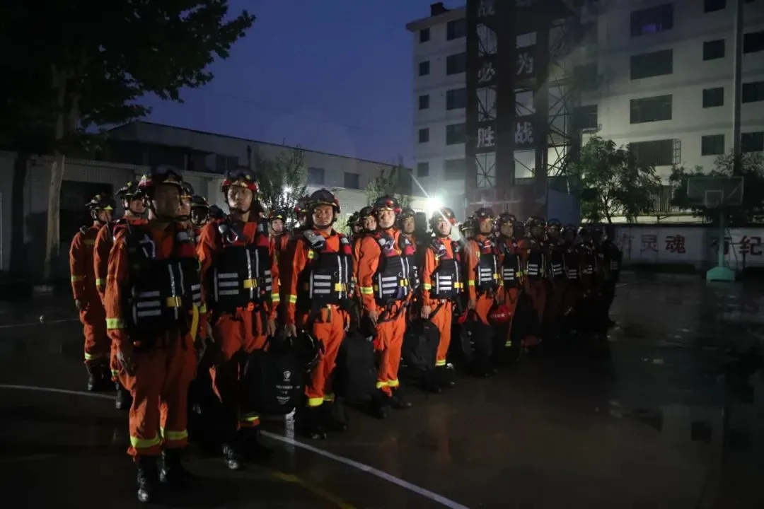 河北总队第一时间调集石家庄、邢台、邯郸、衡水支队4支抗洪抢险专业队及训保支队共计389名指战员、96辆执勤车、31艘舟艇,防护、救生、破拆、排水、通信类装备器材4000余件(套),携行72小时自我保障物资,于7月21日4时23分全部集结完毕出发。