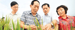 我已经90岁了,但“老骥伏枥,志在千里”,我要力争让我们的团队早日完成每公顷18吨的高产攻关,做好第三代杂交水稻技术的生产应用。我希望最终能实现“禾下乘凉、覆盖全球”的两大心愿。 时光如白驹过隙,一转眼,90年过去,我成了正儿八经的“90后”。我大半辈子都在与水稻打交道,至今从事杂交水稻研究工作已有55个年头。我最关心的,就是与水稻和粮食相关的事。 新中国成立之前,中华大地上到处灾荒战乱,人民生活颠沛流离,少年时我就被迫从一个城市辗转到另一个城市,虽然少不更事,但每当看到沿路举家逃难、面如菜色的同胞,看到荒芜的田野和满目疮痍的土地,我的内心总会泛起一阵阵痛楚。报考大学时,我就对父母说,我要学农。母亲听了,吓一跳,说,傻孩子,学农多苦啊,你以为好玩儿呢?但我是真正爱上了农业,死活要学,还摆出大道理:吃饭可是天下第一桩大事,没有饭吃,人类怎么生存?最后,父母尊重我的选择。 毕业后,我被分配到湖南安江农校任教。安江农校地处偏远,临行前,学校的领导告诉我,那里很偏僻,“一盏孤灯照终身”,你可要做好思想准备。当时我想,能传播农业科学知识,也是为国家做贡献!没想到,去了不久,就碰上困难时期。我当时想,这么大一个国家,如果粮食安全得不到保障,其他一切都无从谈起,我要为让中国人吃饱饭而奋斗! 一天,我看到一些农民从高山上兑了种子,担回来种,就问他们,为什么跑到那么高的山上去换种呢?他们说,山上的种子质量好一些,产得多些。他们接着还说了一句话,叫做“施肥不如勤换种”。这对我有很大启发:农业上增产的途径有很多,但其中良种是非常重要的因素。 从此以后,我开始自己的杂交水稻研究之路。一路走来,有汗水和辛酸,也有丰收和喜悦。科学探索无止境,在这条漫长而又艰辛的路上,我一直有两个梦,一个是禾下乘凉梦,一个是杂交水稻覆盖全球梦。 禾下乘凉梦,我是真做过,我梦见水稻长得有高粱那么高,穗子像扫把那么长,颗粒像花生那么大,而我则和助手坐在稻穗下面乘凉。其实我这个梦想的实质,就是水稻高产梦,让人们吃上更多的米饭,永远都不用再饿肚子。 做梦容易,但要把梦变成现实,则需要付出大量艰苦的劳动和努力。我清楚地记得,那是1961年7月的一天,我到安江农校的试验田选种。突然,我发现了一株“鹤立鸡群”的稻株。穗大,颗粒饱满。我随手挑了一穗,竟有230粒之多!当时以为,选到了优良品种,岂不是可以增产无数粮食? 第二年春天,我把种子播下,结果却令人大失所望,一眼望去,高的高,矮的矮,没有一株赶得上最初的那株水稻。我不甘心,开始反复琢磨其中的奥秘,研究那一片试验田的稻株比例,最终得出一个结论:水稻是有杂交优势的,那株鹤立鸡群的水稻,就是天然的杂交水稻。既然天然杂交稻具有这样强的优势,那么人工杂交稻,也一定有优势。当时,遗传学理论一直否定自花授粉作物有杂交优势。我对此理论提出质疑。随后,我又拜访专家,翻找资料,最终得出结论,既然自然界存在杂交稻,那么人工杂交水稻也一定可以利用。而要想利用这一优势,首先需要找到“天然的雄性不育水稻”。 于是,我又走上曲折的寻找之旅。 其中,最令人刻骨铭心的是,在海南岛找到天然雄性不育野生稻“野败”并加以利用的过程。那是1970年11月,我和助手李必湖、尹华奇驻守在海南岛崖县南红农场,在当地寻找野生稻。在那里,有一位农专毕业的冯克珊,是南红良种繁育场的技术员,经常跑来听我讲课。冯克珊联想到农场附近有一种名叫“假禾”的草,很可能就是我要找的野生稻。11月23日,他找到李必湖,来到南红农场铁路涵洞附近的水塘边,到那片正在开花的野生稻中察看。他们发现了三个雄花异常的野生稻穗,野生稻穗的花药细瘦,色浅呈水渍状,不开裂散粉。这三个稻穗生长于同一禾蔸,是从一粒种子长出、匍匐于水面的分蘖。他们立即把这蔸野生稻连泥挖起,放在铁桶里拉回去,然后移栽到试验田里,等待鉴定。当时,我正在北京开会,收到助手们从海南发来的电报,连夜赶火车奔回海南岛。经过仔细检验,我们最终确认这是一株十分难得的天然雄性不育株野生稻,我给它命名为“野败”。 这真是大海捞针啊! “野败”的发现对杂交水稻研究具有里程碑的意义,更是杂交水稻“三系”配套成功的突破口。1973年,我们协作组历尽千辛万苦才通过测交找到恢复系,攻克“三系”配套难关,才有了新中国第一代杂交水稻。第一代以细胞质雄性不育系为遗传工具的杂交水稻,优点是不育系不育性稳定,但也有缺点,即配组的时候受到恢保关系制约,因此选择优良组合的几率比较低,难度大。自上世纪80年代中后期起,我们开始研究两系杂交水稻。1995年,第二代以光温敏不育系为遗传工具的杂交水稻——两系法杂交稻研制成功,它的主要优点是配组自由选择,能选配到优良稻组合的几率比较高。但是,第二代杂交稻也不是完美的:不育系育性受气温和光照影响较大。我想,如果有一种杂交水稻,既兼具第一代和第二代的优点,又能克服二者的缺点,那该多好啊!2011年,我们又启动第三代杂交水稻育种技术的研究与利用,这是以遗传工程雄性不育系为遗传工具的杂交水稻,已初步研究成功,该杂交水稻克服了前两代的缺点。现在,我们甚至开始了第四代、第五代杂交水稻的研制。 追求高产更高产,是我们永恒的目标。自
