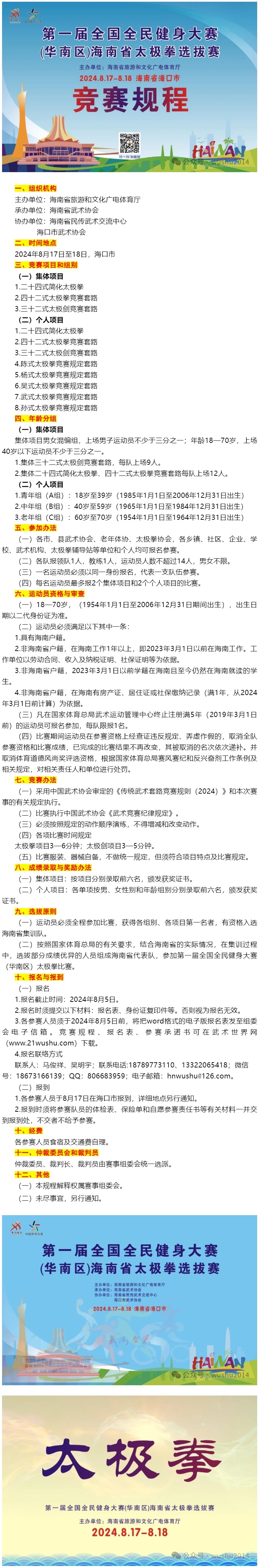 海南省旅游和文化广电体育厅办公室印发《第一届全国全民健身大赛(华南区)太极拳选拔赛竞赛规程》