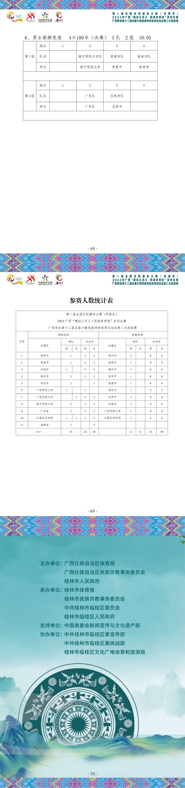 第一届全国全民健身大赛(华南区)2024年广西“潮动三月三·民族体育炫”系列比赛 广西参加第十二届全国少数民族传统体育运动会第二次选拔赛高脚竞速板鞋竞速秩序册