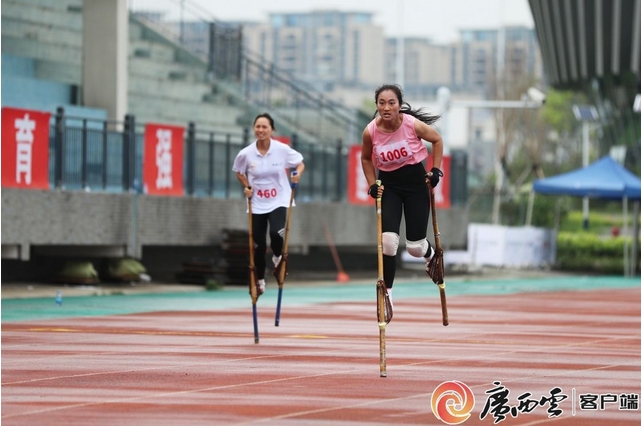 选手在第一届全国全民健身大赛(华南区)高脚竞速项目比赛中。记者 金翔义 摄