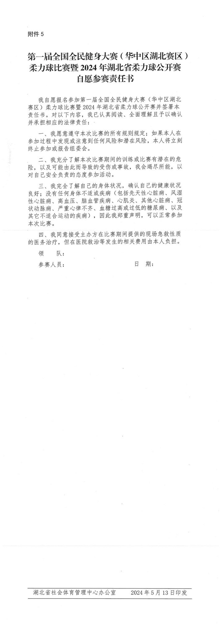 关于举办第一届全国全民健身大赛(华中区湖北赛区)柔力球比赛暨2024年湖北省柔力球公开赛的通知