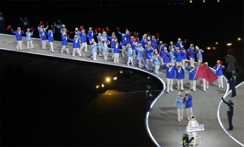 本届冬奥会,中国元素让中意冰雪情缘愈发深厚。在距离梅阿查西南15公里的“中国之家”,来自阿勒泰的毛皮滑雪板正在精彩展出。这一以松木、马皮为原料制作的非遗器具,至今仍被阿勒泰地区群众沿用,其形制与一万两千年前的滑雪岩画形象相互印证。它将中国最古老的冰雪运动文化带到米兰冬奥赛场,成为中华优秀传统文化与奥林匹克运动交融的缩影,也再次证明了冰雪运动与生产生活息息相关,人类对冰雪运动的热爱传承万年。中国体育代表团的入场更是赢得了梅阿查现场6万余名观众的掌声。在宁忠岩、张楚桐两名旗手引领下,126名冰雪健儿将参加7个大项15个分项91个小项的角逐,展示新时代中国体育事业发展的新成就和中国体育健儿的新风采。