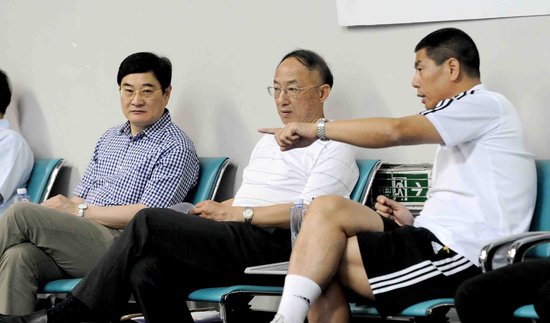 刘鹏局长此次是专门来北仑看望正在紧张备战伦敦奥运会的中国女排姑娘们的。为了能够在短暂的时间内更充分地了解中国女排的备战工作,刘鹏在9日傍晚抵达北仑后,吃过晚饭就先坐下来与女排教练组进行座谈,听取了中国女排教练组近一年来的工作情况,提出了下一步工作要求,一谈就谈到深夜。