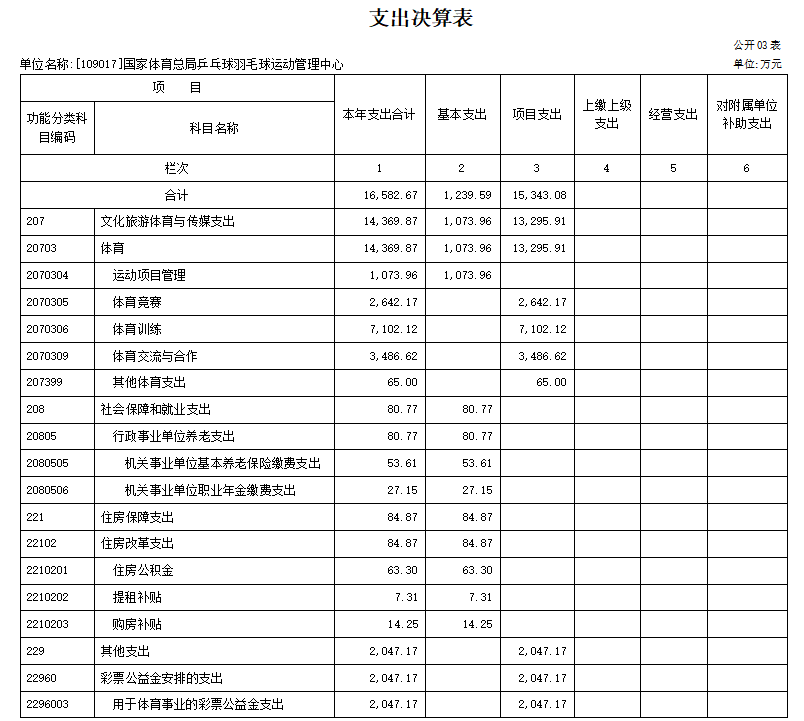 第二部分 国家体育总局乒乓球羽毛球运动管理中心2024年部门决算表