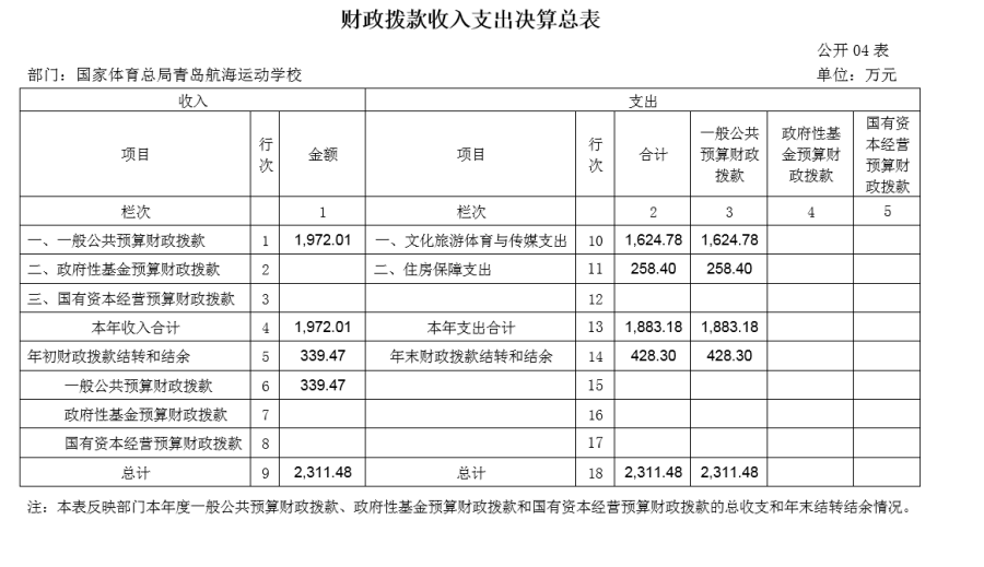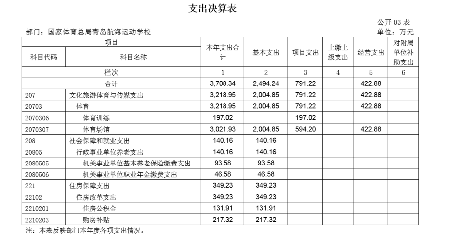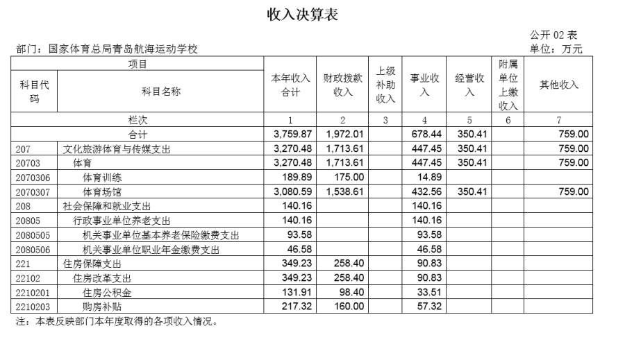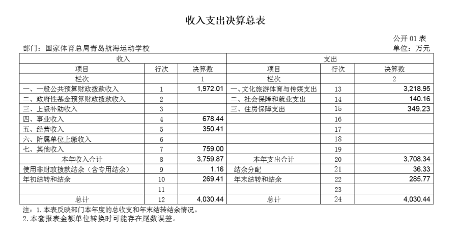 国家体育总局青岛航海运动学校2023年度部门决算目录