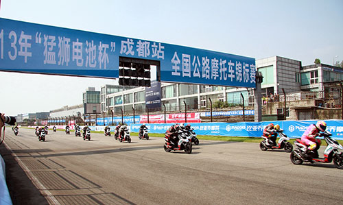 10月4-6日,2013年“猛狮电池杯”全国公路摩托车锦标赛在成都金港赛车场举行收官之战。该赛车场坐落于锦江森林公园一侧,拥有国际标准二级赛道,全长3.33公里,弯道共有16个,最长的直线赛道830米,适合举办国际国内多项汽摩赛事。