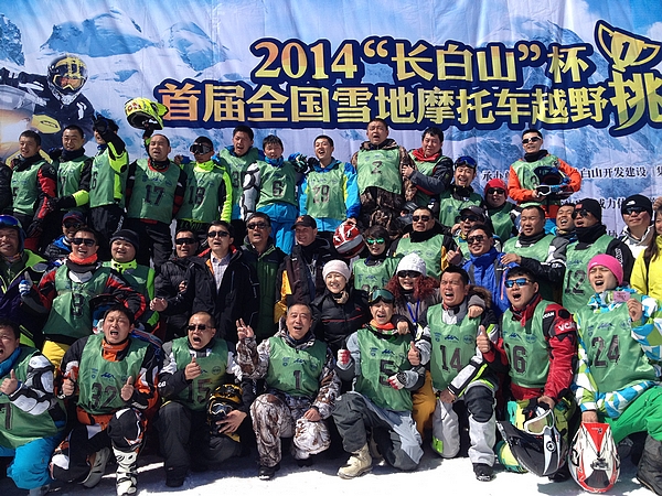 2014年3月21-23日,“长白山”杯首届全国雪地摩托车越野挑战赛在长白山国际天然滑雪公园落幕。雪地摩托越野是在中国刚刚兴起的一项极限运动。本次比赛是中国首次举办的雪地摩托车专项赛事,参赛的车手也大多原本是越野汽车和越野摩托的运动员。