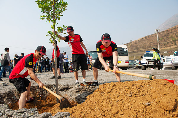 东川政府在赛事的活动组织方面也十分尽心尽力,在今天举行的发车仪式之前,还专门组织了赛车手和裁判、媒体记者进行植树活动,完美的对上了“五一劳动节”的氛围。这样的推广方式,在国外的汽车运动赛事中也经常使用。