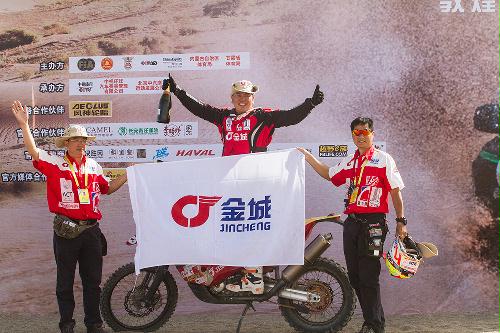 金城车队在摩托车组的优势相当大,双保险组合让全场冠军的奖杯不太可能旁落他人。苏文敏虽然在比赛中一度受伤,但前半程积累的优势还是让他如愿地夺得了2014中国越野拉力赛摩托车组冠军,队友周田夺得亚军。河北迁安九江汽摩俱乐部王翼荣则获得全场季军。