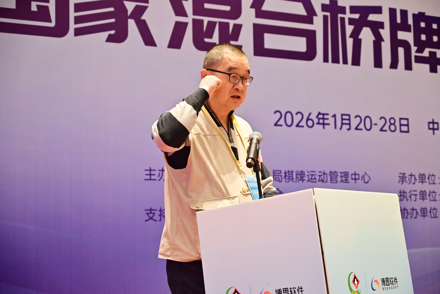 国家体育总局棋牌运动管理中心副主任赵爱国表示,在“十五五”开局之年,桥牌人身处新时代,面临新任务,肩负新使命。如何更好推动桥牌运动高质量发展,更好发挥桥牌运动的多元功能价值,更好让桥牌运动服务党和国家事业发展大局、助力强国建设和民族复兴,是摆在我们面前的重要课题。总局棋牌中心、中国桥牌协会将聚焦工作中的短板和不足,以改革创新为根本动力,以满足人民群众对桥牌运动的需要为根本目标,以抓铁有痕、踏石留印,只争朝夕、久久为功的精神,推动桥牌运动高质量发展。希望桥牌人齐努力,带动更多人参与、爱上这项运动,培养更多“桥牌人”,拓展更广“桥牌缘”,构建更大“桥牌圈”。