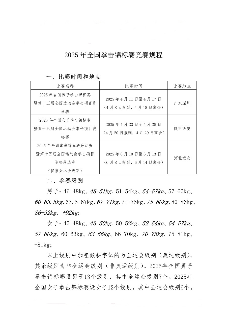 2025年全国拳击锦标赛竞赛规程