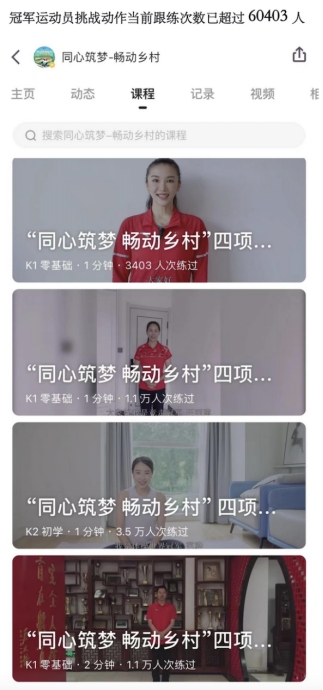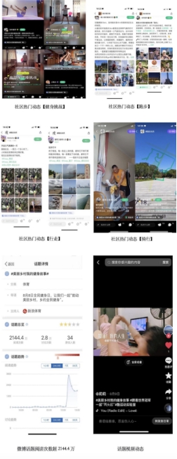 “四项赛”还通过Keep社区、微博、百度APP、抖音平台上的“#美丽乡村我的健身故事#”同名话题进行“打卡”与抽奖。截至8月底,各新媒体平台话题阅读总量已超过2161万次。