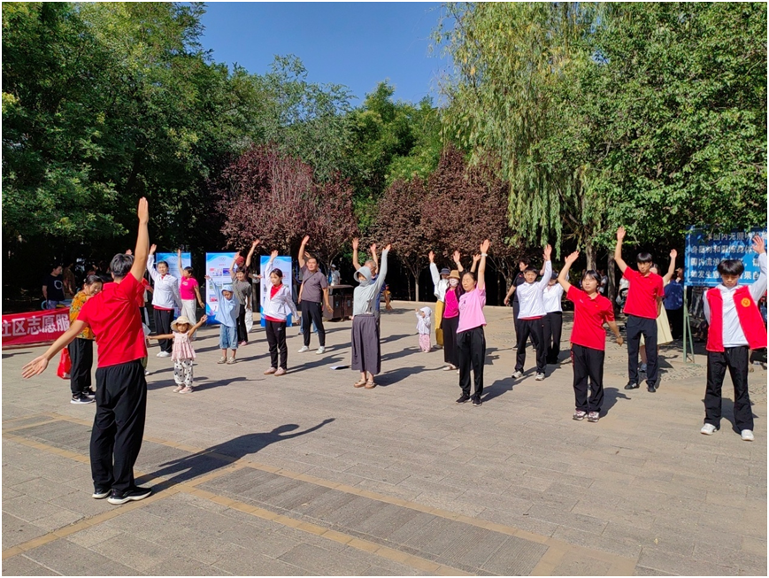 为大力弘扬中华体育精神,深入开展党员承诺践诺,持续推进运动队进社区志愿服务工作,倡导健康生活方式,8月14日,省体工二大队与焦家湾社区以“全民健身进社区 党群共建聚活力”为主题,联合组织开展全民健身主题志愿服务活动。大队党员干部、在兰运动员、年轻干部参加本次活动。