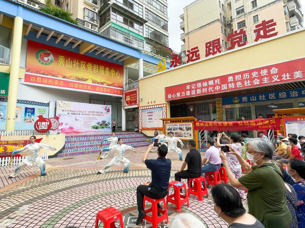 近日,广西体育人力资源开发和保障中心、广西体操武术运动发展中心联合组织广西武术队走进南宁秀山社区,开展全民健身指导及武术表演活动,受到南宁市青秀区政协、津头街道、秀山社区干部群众的热烈欢迎。