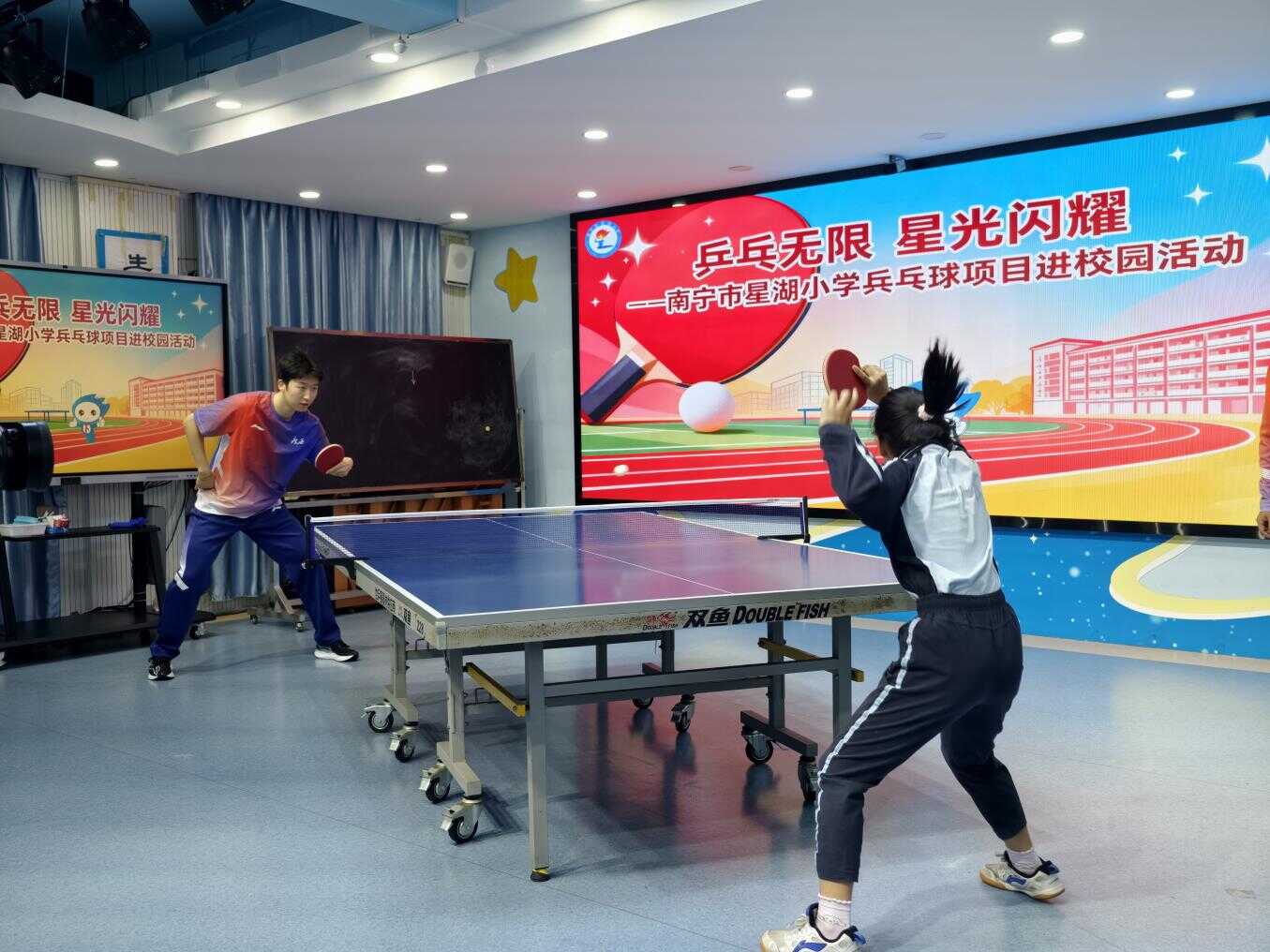 广西乒乓球队赵骢越与现场学生进行友谊PK