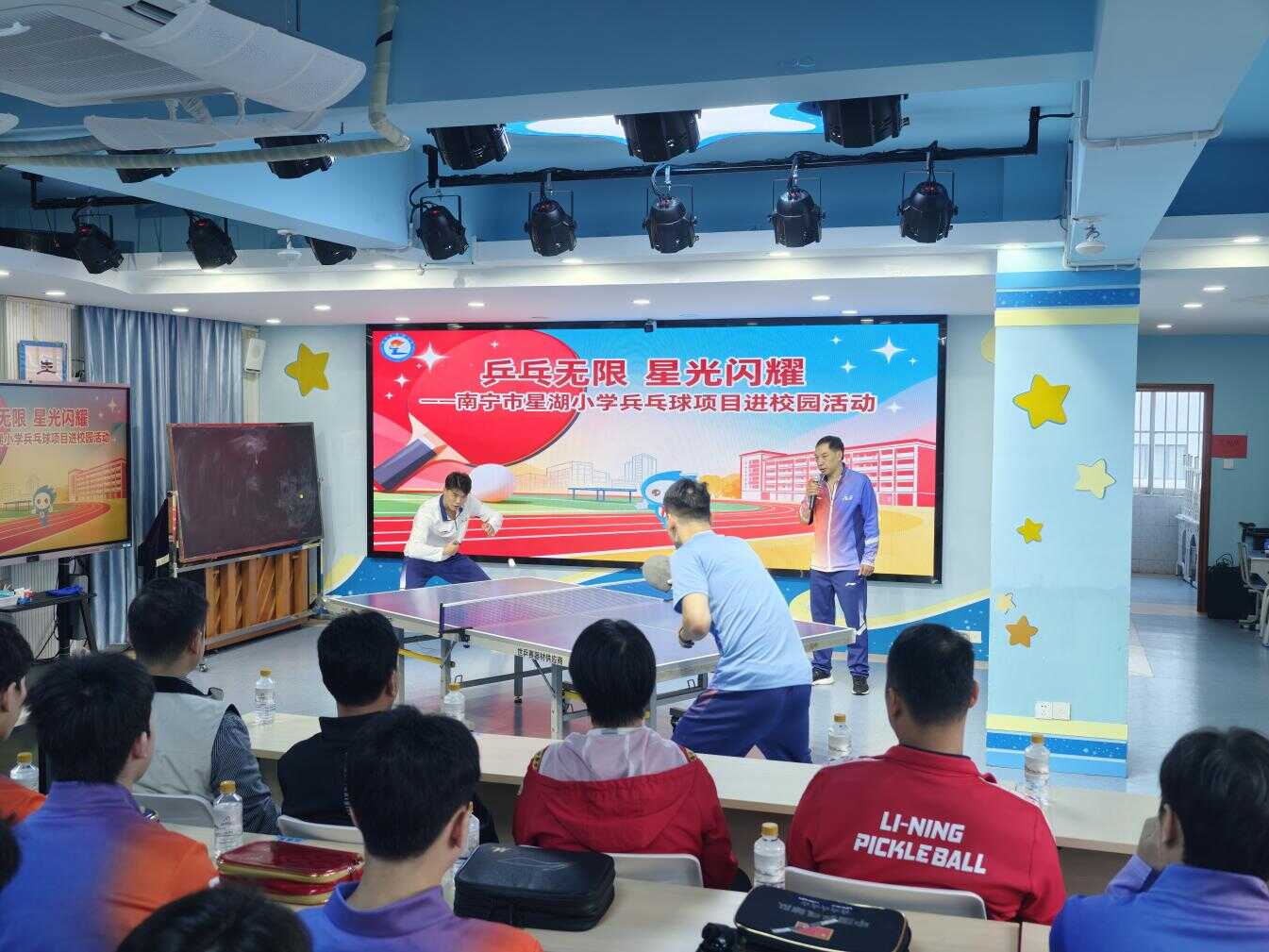 为推广普及乒乓球运动,丰富校园体育文化生活,10月30日,广西球类运动发展中心组织广西乒乓球队运动员、教练员等一行17人走进南宁市星湖小学开展“乒乓球进校园”主题活动,通过专业指导、互动体验等形式,为师生们带来了一堂生动有趣的乒乓球技能课。
