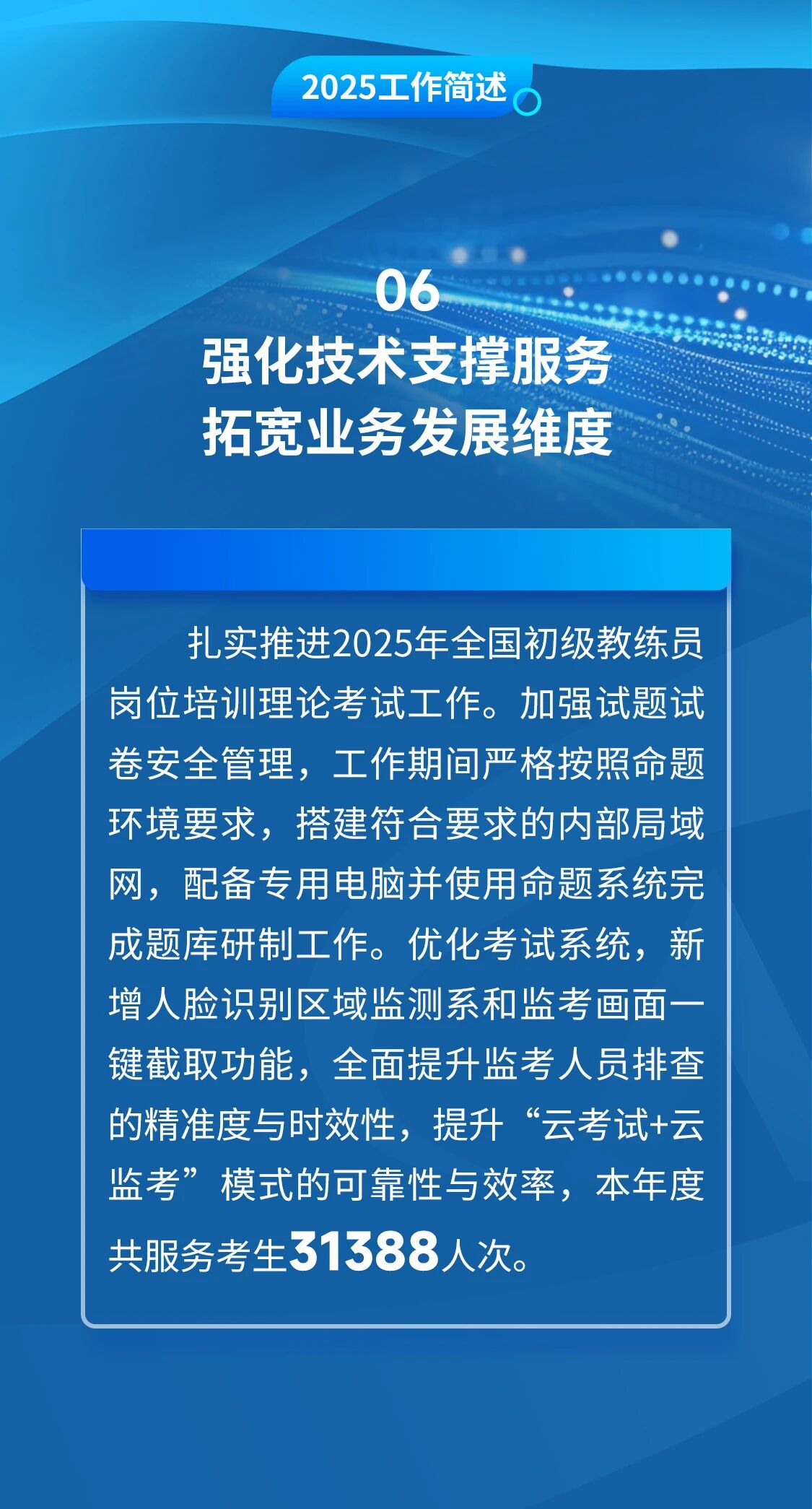 我们将以标准之尺,引领专业高度,以鉴定之责,服务发展大局,持续推进体育职业技能人才培养与评价工作高质量发展,为体育强国建设与健康中国建设,贡献更坚实的专业力量。