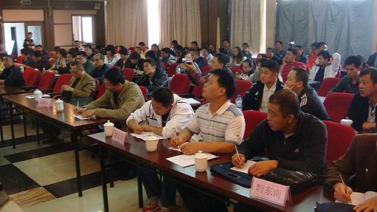 按照贵州省体育局的需求,我中心组织国家体育总局体育科学研究所常芸研究员、张忠秋研究员及清华大学曹春梅助理研究员三位专家于2010年 5月19日至21日赴贵州讲学指导。三位专家分别以运动训练恢复与伤病防治、运动心理调控、运动生物力学在运动训练中的应用等专题进行授课,同时利用晚上时间与学员们互动交流,对学员们提出的问题,逐个进行认真细致的解答。互动活动结束后,学员们意犹未尽,仍围着专家继续咨询。 贵州省体育局各运动项目管理中心、体育运动学校、13个地、州、市、县(文化)体育局、业余体校的教练员、队医、科研和管理人员以及大学体育教师、体育中学教练共160余人参加了培训。同时,为使支援西部短期讲学工作更有针对性,我们还对参加培训的学员进行了问卷调查。