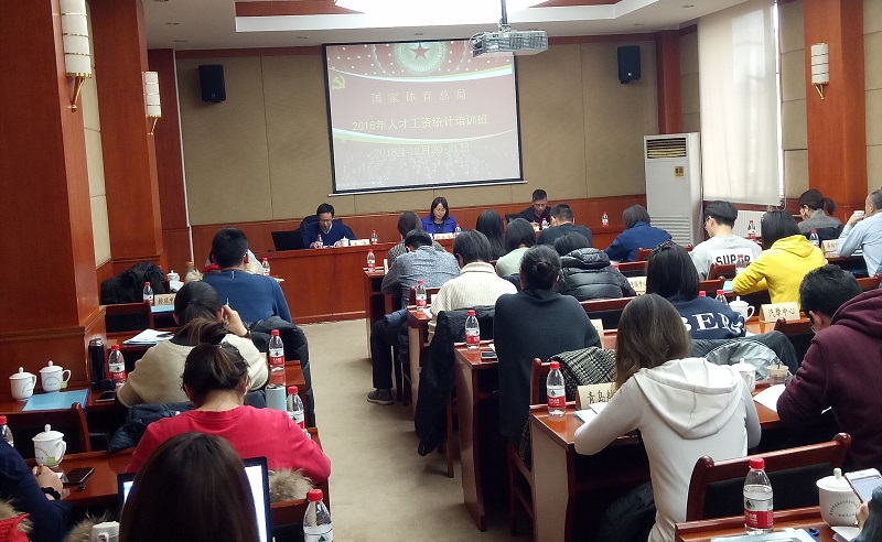 12月20-21日,国家体育总局2018年人才工资统计培训班在京开班。来自体育总局41家直属事业单位和3家直属企业负责人才工资统计工作的50余名工作人员,参加了为期两天的培训。 培训班受体育总局人事司委托,由体育总局人力中心具体承办,培训班主要任务包括:一、布置、讲解2018年总局系统人才、工资统计工作,并对统计软件进行培训;二、布置2018年体育总局系统事业单位全员信息收集工作;三、进行相关人事、人才政策及工作培训。为了能够更好地落实国家人社部和体育总局人事司的相关工作要求,培训班邀请了国家人社部负责人才、工资相关业务处室负责同志及统计软件研发单位的专家亲自授课。体育总局人力资源开发中心副主任匡乐华参加培训班并做了工作动员。