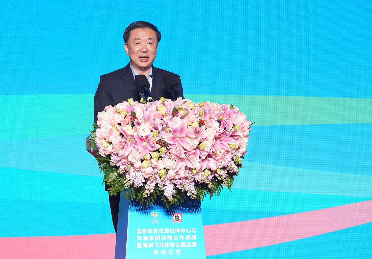 许峰代表江阴市委、市政府,向参加本次启动仪式的各位领导、各位嘉宾表示欢迎。他说,今天海澜集团与国家体育总局社体中心的强强联合、飞马体育公园的建成投用,不仅为江阴老百姓精心打造了一座家门口的高水平健身综合体,也必将把更多国家级高端赛事引入江阴,为江阴做深做大“赛事+”文章、推动文体旅深度融合发展,提供有力支撑、注入澎湃动能!