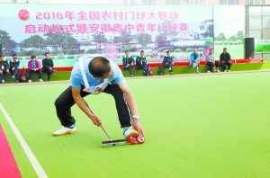 项 涓摄 由总局社体中心、中国门球协会、安徽省社会体育指导中心、安徽省门球协会主办,安庆市教育体育局、太湖县政府承办,2016年全国农村门球大联动启动仪式暨安徽省中青年门球赛开幕式,5月11日在安徽省太湖县举行,中国门球协会主席翁家忍、总局社体中心副主任刘北剑、中国门球协会秘书长张娜、安徽省社体中心副主任孙秀兰、太湖县县长朱小兵等出席此次赛事活动。开幕式上,翁家忍将“全国门球之乡”荣誉牌匾授予太湖县县长朱小兵。 趁势而上 不断拓展 全国农村门球大联动活动创办于2011年,5年来,伴随每年举办的启动仪式和年终总决赛,门球运动在广袤的乡村风起云涌,蓬勃展开,掀起了门球下乡的新高潮。它为统筹城乡门球事业的发展,增强农村门球公共服务,带动百城、千村、百万人次的门球活动增添了助力,为“全民健身计划”在农村落实作出了贡献。 刘北剑说,“没有全民健康就没有全面小康”,十三五体育规划对于群众体育工作提出了完善全民健身活动体系,拓展全民健身活动的广度和深度,建立有效的业余竞赛活动体系;大力培育基层全民健身组织,逐步建立遍布城乡、规范有序、充满活力的社会化全民健身组织网络;加强对老年人等特殊群体开展体育活动的组织与领导,广泛调动社会力量,为贫困人口和农民工等弱势群体参加体育活动提供场地设施、科学指导等保障服务的要求,这为我国体育运动大发展提供了难得的机遇,也为我国门球运动发展提供了宝贵的机遇,我们要紧紧抓住这个机遇,趁势而上,有所作为!举办农村门球大联动活动,对于践行我国体育十三五发展规划,实施全民健身计划,服务中老年人和农村人口的体育工作,具有重要的作用和积极的意义。 重视发展带来丰硕成果 张娜介绍说,在太湖县委的高度重视下,太湖县体育局、老年人体育协会充分利用当地资源,不断推进门球组织建设和队伍建设,广泛开展群众性门球活动,并多次承办全国性门球活动。门球在当地已拥有坚实的群众基础,是当地群众广泛参与的重要全民健身项目。 张娜说,太湖县已成为全国县域门球发展的先进典型,命名太湖县为“全国门球之乡”,是实至名归。希望太湖县充分利用本地开展门球活动的先进经验,继往开来,不断创新,持续推动门球运动的发展,为全民健身计划的实施,为实现中华民族伟大复兴的中国梦作出积极贡献。 孙秀兰表示,此次授予太湖县“全国门球之乡”荣誉,这在全省是首次,这不仅是太湖县的光荣,也是安徽省的光荣,2016年全国农村门球大联动启动仪式落户太湖县,是总局社体中心、中国门球协会对安徽省门球运动的重视和支持,今后,安徽省相关部门会抓住大好机遇,并以此为契机,认真做好门球运动的推广与普及工作,为广大门球爱好者提供更好的赛事平台,为门球事业的发展作出贡献。